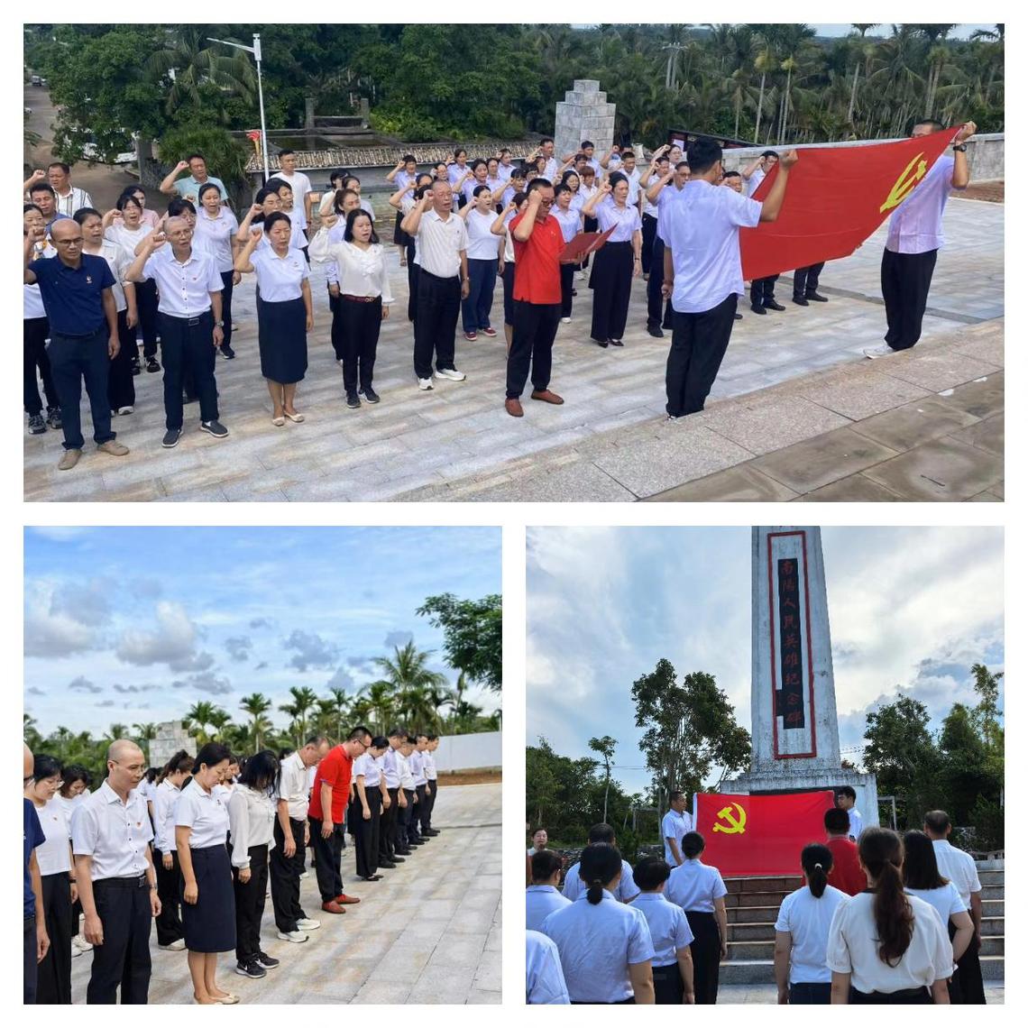 为深入贯彻落实中央八项规定精神,强化党风廉政建设,同时充分发挥党建引领作用,传承红色基因,提升基础教育教学质量。2025年6月29日,海南师范大学基础教育办学管理部党总支带领附属小学、附属幼儿园党支部,赴文昌市南阳人民英雄纪念碑、文城中心小学开展了“践行中央八项规定精神,传承红色基因,服务基础教育”的党建活动。并且将党建工作与教育教学深度融合 ,为基础教育高质量发展注入强劲动力。