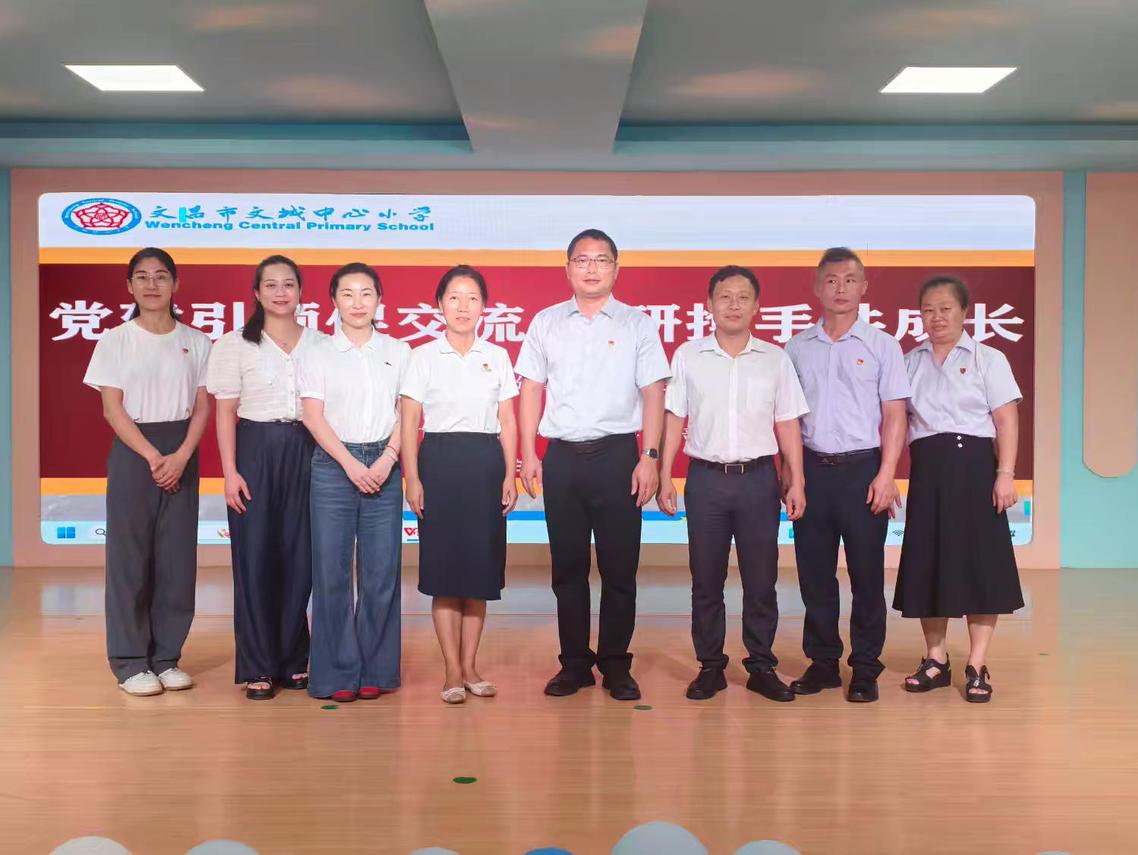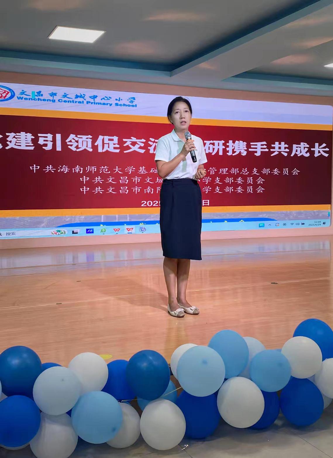 海南师范大学基础教育办学管理部组织海师附小和海师附幼的学科骨干教师在文城中心学校开展党建引领教研活动。